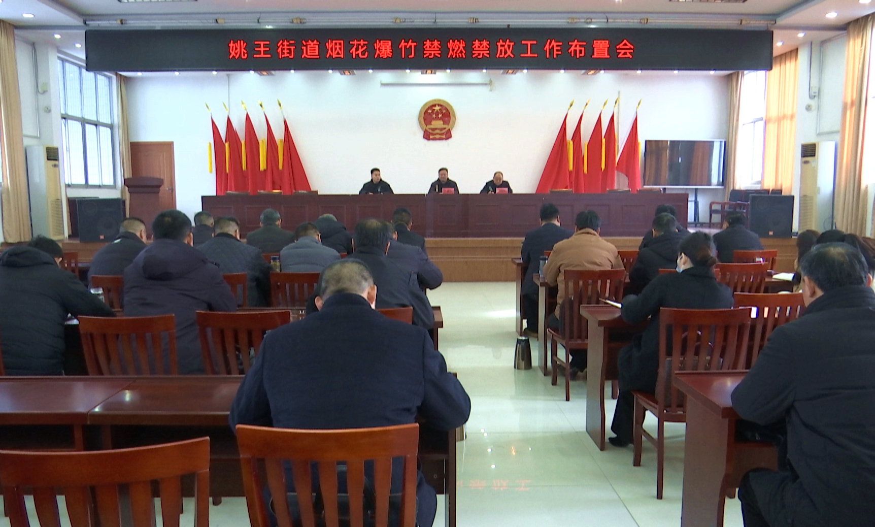2月9日上午,生态环境局联合姚王街道召开烟花爆竹禁燃禁放工作部署会,解读禁止燃放区域范围及相关防范要求。