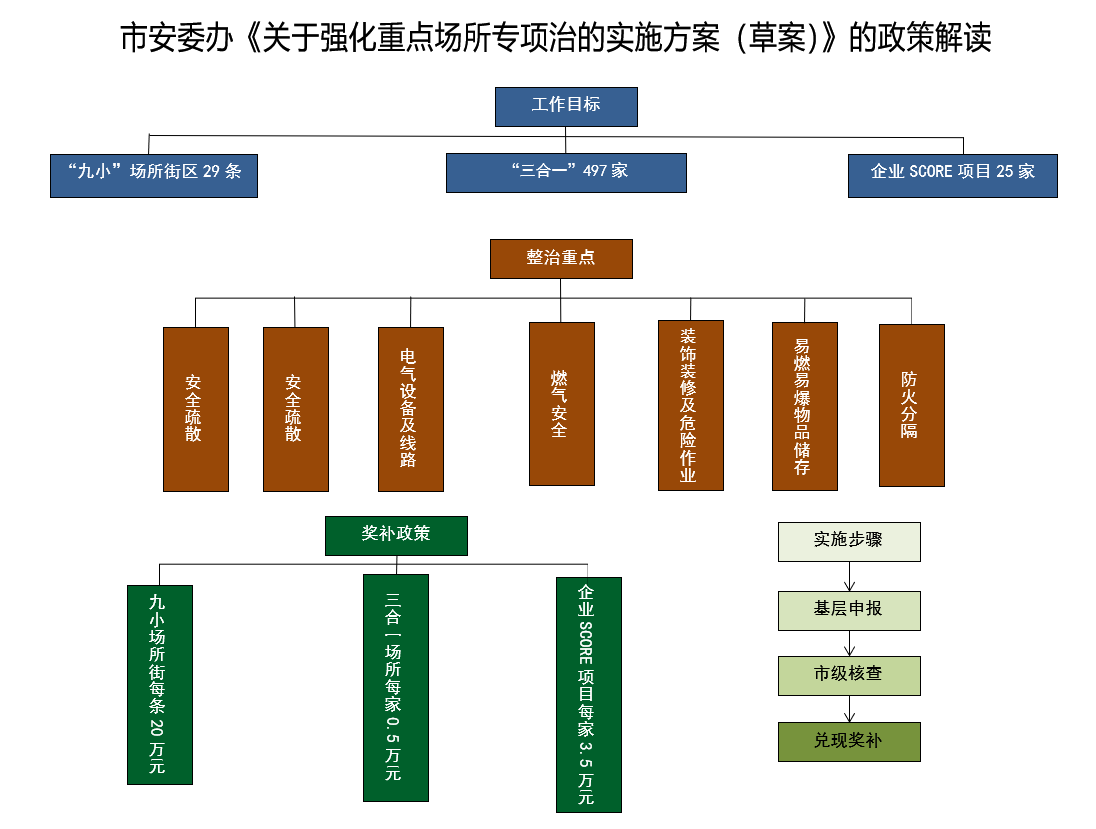 设置专项奖补资金916万元。其中,“九小”场所聚集街区方面,每条街补贴20万元。“三合一”场所方面,每家补贴0.5万元。企业可持续发展项目方面,每家补贴3.5万元。