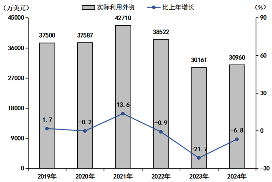 图4:2019-2024年实际利用外资及增长速度