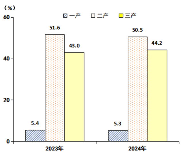 图2:2023-2024年三次产业增加值占地区生产总值比重