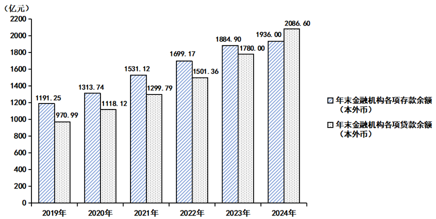 信贷规模持续扩大。年末全市金融机构本外币各项存款余额1936.0亿元,增长2.7%,年末金融机构本外币各项贷款余额2086.6亿元,增长17.2%。